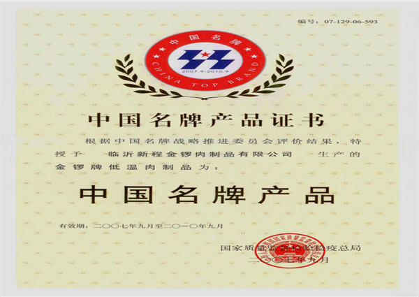 中國名牌產(chǎn)品—低溫肉制品